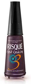 “Sempre buscamos referências nacionais e internacionais de moda, tanto nas passarelas quanto nas ruas, pensando nossas consumidoras”, afirma Gabriela Garcia, Diretora Executiva de Marketing. O conceito fast fashion já está consolidado no mercado da moda e Risqué Fast Fashion 03 – Violeta Acinzentado segue a mesma fórmula de sucesso de suas antecessoras, sendo lançado em lote exclusivo. “A equipe de criação e desenvolvimento trabalha intensamente para trazer cada vez mais novidades e com maior rapidez, como nosso público pede. Somente em 2011 foram cinco novas linhas, entre edições e coleções, além de três lançamentos Fast Fashion, num total de 40 novos esmaltes,” finaliza a executiva.